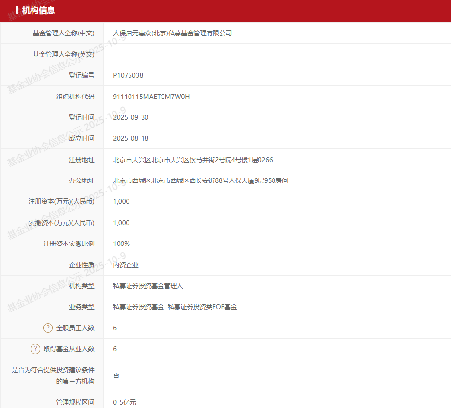 2025年8月,人保资产关于发起设立人保启元惠众的申请获得国家金融监督管理总局批复同意。2025年3月,中国人民人寿保险股份有限公司及人保资产获准以契约制基金方式参与第二批保险资金长期股票投资试点,获批规模为100亿元。