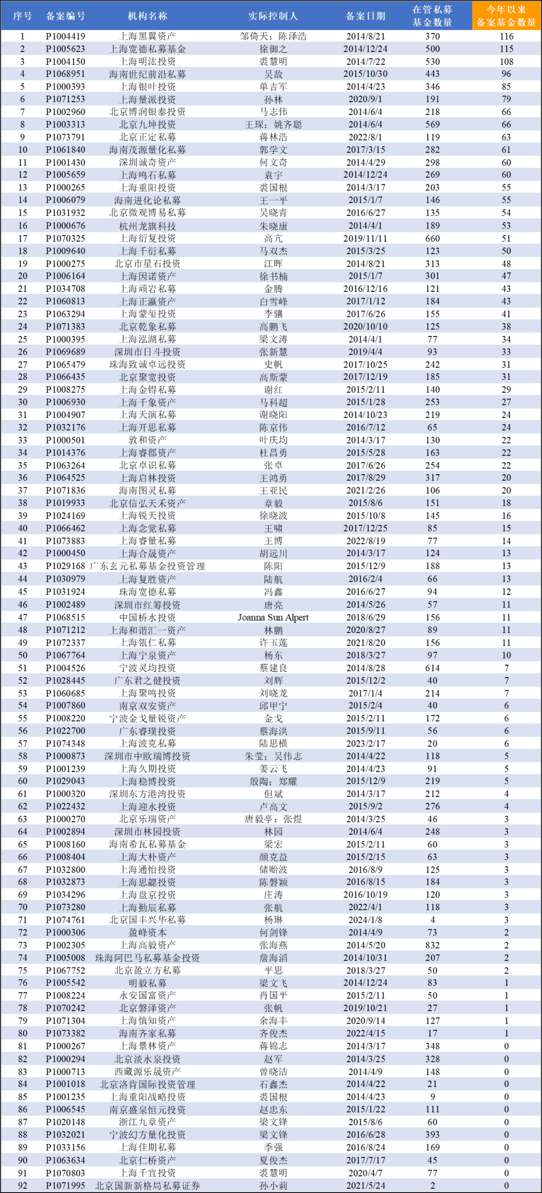 根据中基协数据显示,9月百亿私募共计92家,整体相较于上月的新增3家:上海正瀛,上海开思和深圳红筹投资。