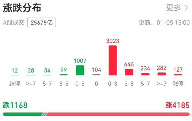 从个股来看,收盘时全市场有4185只个股上涨,其中127只个股涨停;下跌个股为1168只,其中12只个股跌停。
