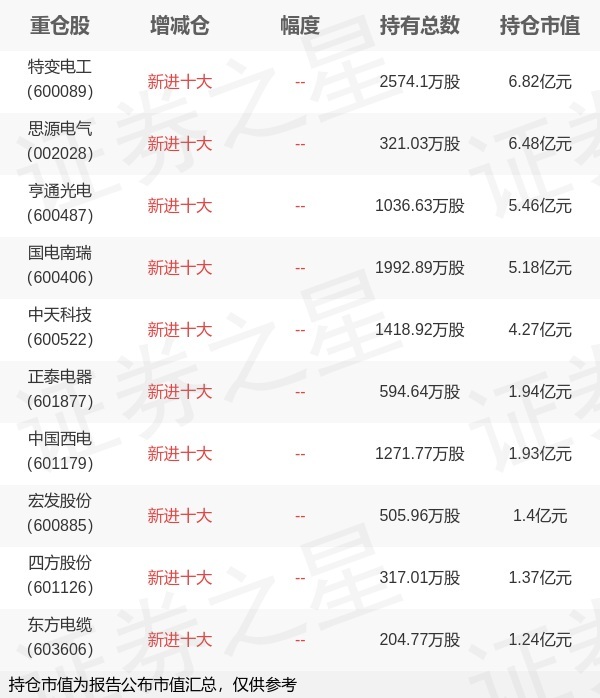 2026-04-24半岛体育,半岛体育官方网站,半岛体育APP下载证券之星消息,4月22日天弘基金旗下刘笑明 张戈管理的天弘中证电网设备主题指数型发起式基金公布一季报。与上一季度相比,该基金前十大重仓股新增特变电工,思源电气,亨通光电,国电南瑞,中天科技,正泰电器,中国西电,宏发股份,四方股份,东方电缆;其中特变电工持仓占比10.45%,为该基金第一大重仓股;详细数据如下:
