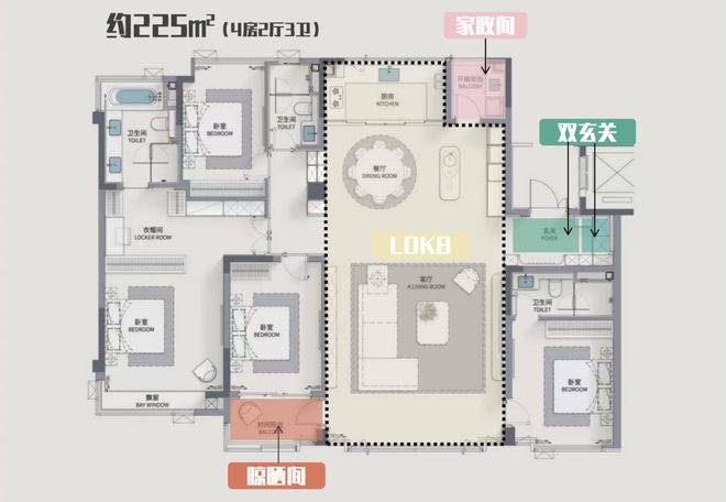这批房源同时也是翡丽甲第比较奢侈的225㎡大面积房源,户型主卧为270°全景舱,主打一个超绝享受。
