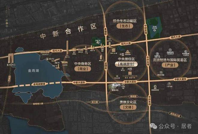 两条轴线之间,是整个中新合作区最值钱、金贵、繁华的地带。一街两轴,打造出一副“东产业、西商业、南文体、北生态”的超级宏图。