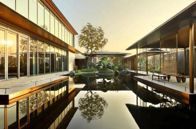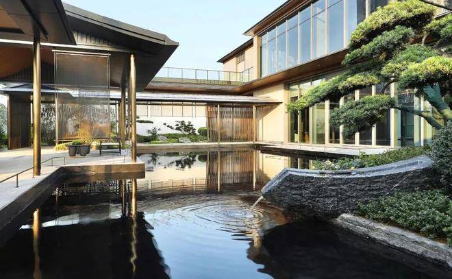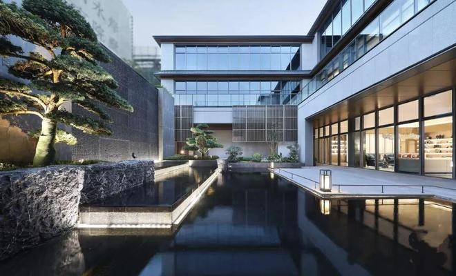 你看,坡顶飞檐、阶梯入门、青松绿植、格栅围墙……高门大户般的门头,流转着东方气韵,再现风雅之境。